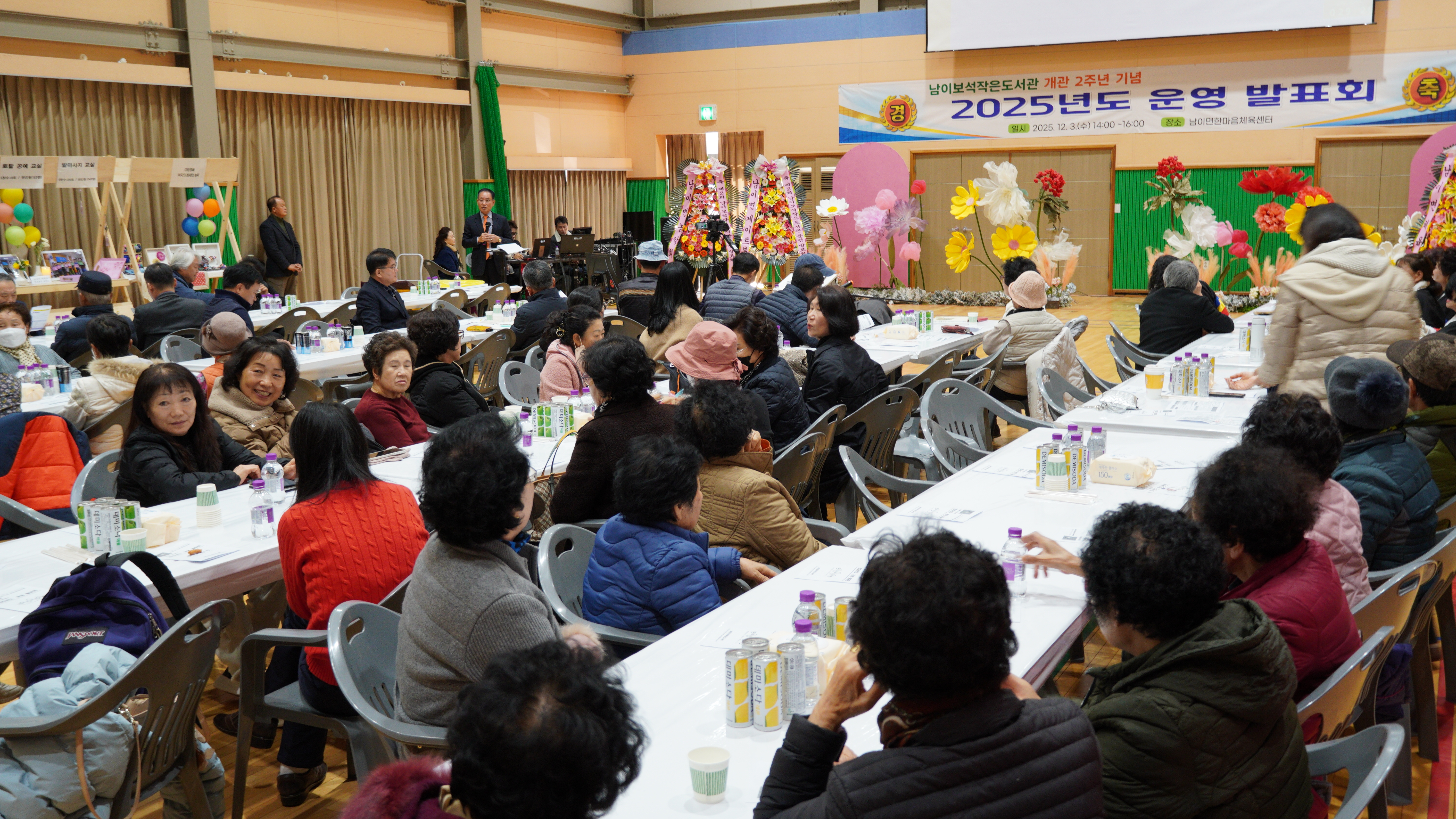 남이보석작은도서관(운영위원장 이왕근/전 남이면 우체국장)은 3일 오후 2시, 남이면 한마음체육관에서 '2025 운영 발표회'를 성황리에 개최하고 지난 1년의 성과를 주민들과 공유했다. 이 자리에는 전영상 남이면장, 정재연 노인회장 등 주요 기관단체장과 도서관 운영위원, 그리고 주민 150여 명이 참석해 산골 마을의 작은 축제를 축하했다.