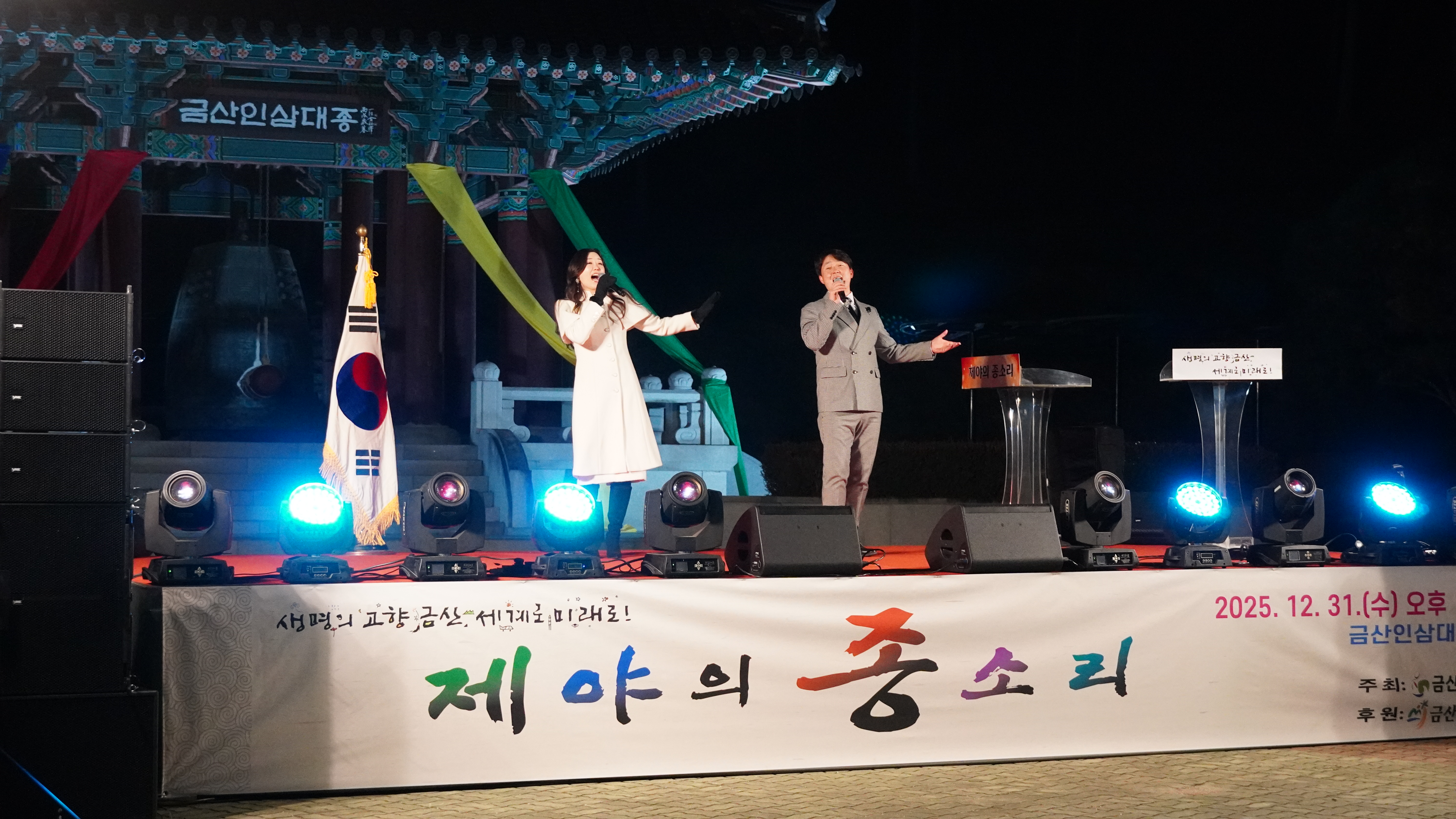 금산군은 2025년 12월 31일 밤 12시 금산세계인삼엑스포광장에서 ‘인삼대종 제야의 타종식’을 열고 2026년 새해의 시작을 알렸다. 이날 행사에는 400여 명의 군민이 참석해 한 해를 마무리하고 새해 희망을 기원했다.