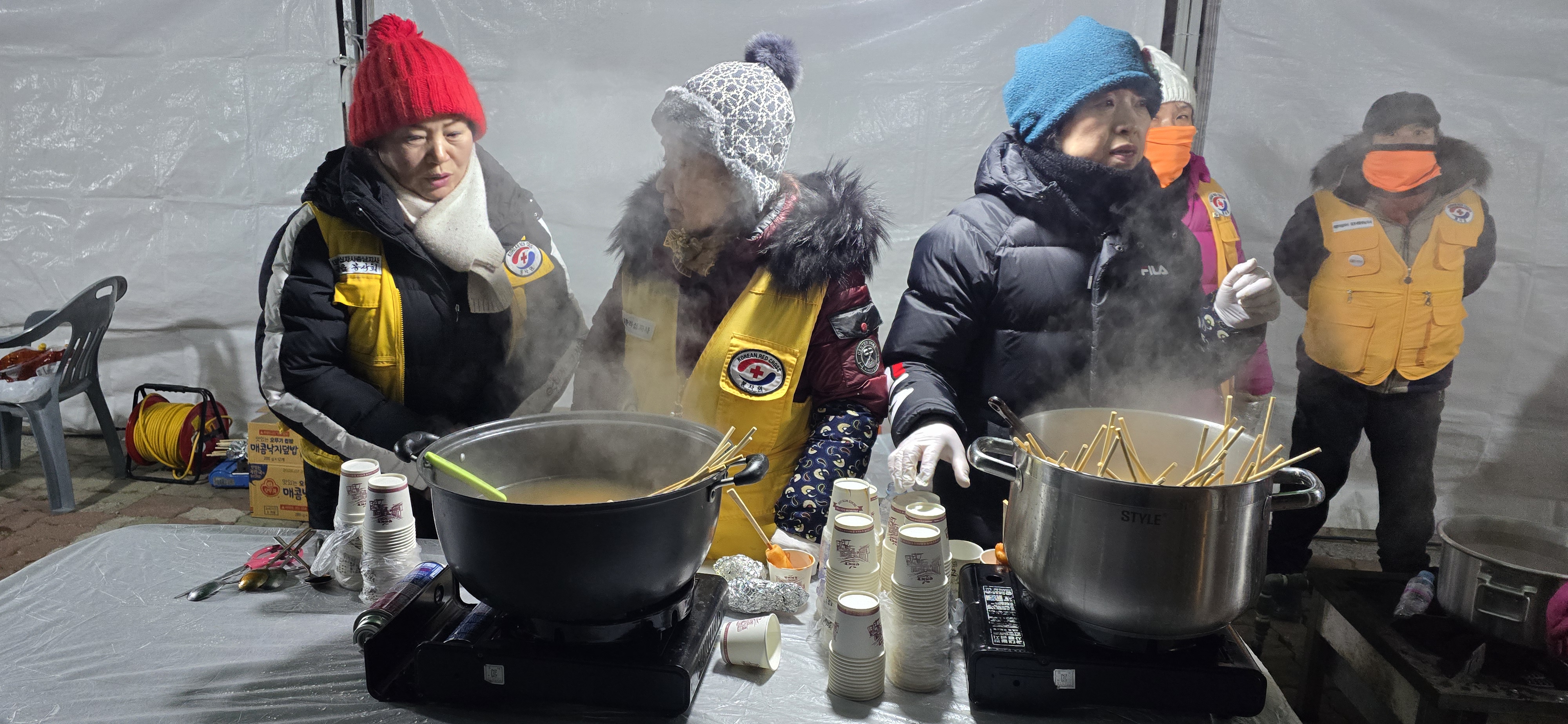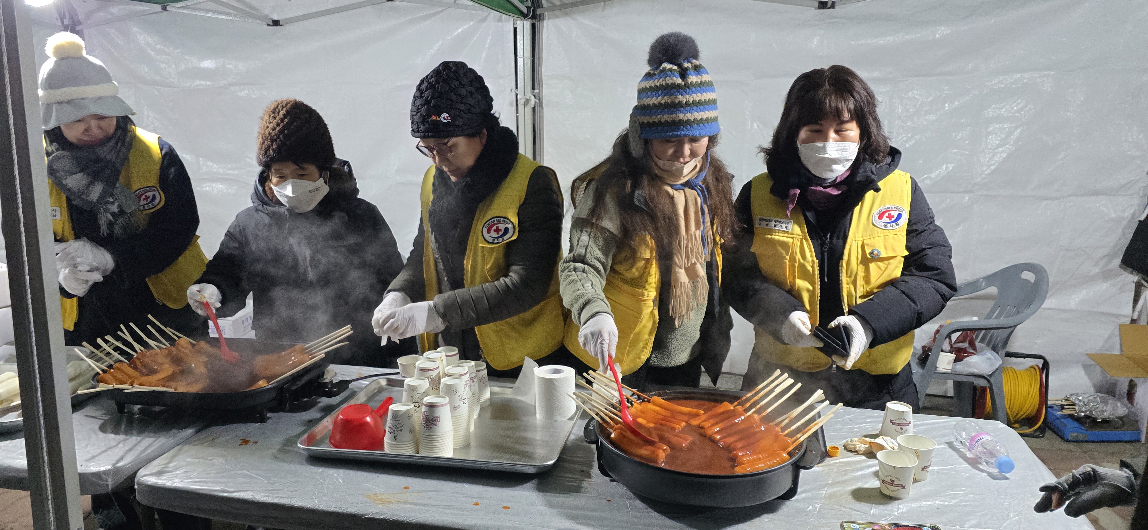 대한적십자사 금산군지회 등 지역 봉사단체는 모닥불을 피우고 군고구마와 가래떡, 어묵 국물을 나누며 현장을 찾은 군민들의 체온과 마음을 함께 데웠다. 이어 전통공연예술단 천지의 해넘이 사자굿이 펼쳐지며 한 해의 끝을 장식했다.